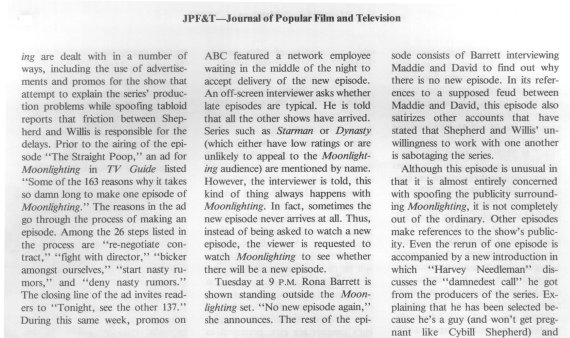 Fall 1988 Journal of Popular Film & Television--The Mystique of Moonlighting: "When You Care Enough to Watch the Very Best"