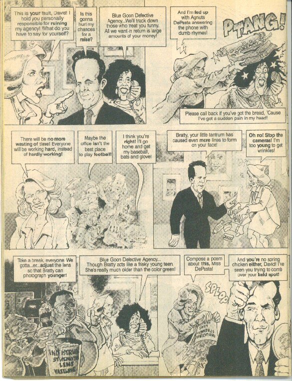 Cracked Magazine in its March 1987 issue did their take on Moonlighting. It is super silly and rather juvenile, but the best part is when investigating their case, the Moonlighting duo encounters Laura Holt and Remington Steele. Check it out!
