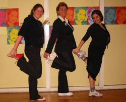 After 2 days of walking around in beautiful London it was time to go to SOHO theatre. First we had a nice Italian dinner right next door to the SOHO theatre. We were all very excited and Steph and Carina (such sweeties) and I were a little nervous. Before the show my hubby made pictures of the three of us in the hallway of the theatre. We were first in line, we were there 45 minutes before the show would start, and when the door opened we got the first row seats. The bassplayer was tuning and her pianist Tom Adams was also coming in. When we sat down (1st row in the middle, best spot there is) we saw that there was no stage, she was playing on the theatre floor. We were really excited about the fact that her stool was only 5 feet from where we were sitting. Then I started to realize that I could really see those blue eyes up close. Boy, that was a bomb! Now I was getting really nervous. Then all of a sudden a voiceover said: "Ladies and gentleman.... please welcome Miss Cybill Shepherd!" Moonlighting theme started (not sung by Al Jarreau btw), and we could see a slideshow of pictures from Cyb from her modelling years till now, the last pic was the one with the jetlagged hair (loved it that it was on the there!). Then........... she came in....... You DON'T know what it does to ya when all of a sudden she's standing right in front of you. SO CLOSE, BUT REALLY...... SOOOOO BEAUTIFUL!! She started to talk and say hi to everybody and the she turned around and looked at the bad hair pic and said... "Well, that's what happens when you can't get a hairdresser early in the morning!". When we saw that pic, me and the girls were applauding like crazy. My hubby was also laughing his butt off! She started the show and made jokes, sang, and danced! It is all one big joke about herself and that's the funny thing about it. She does a MEAN version of the L'Oreal commercials! (made up by herself). It's a killer! She forgot the first line on Graceland Revisited. And Steph and I sang the first line, then she said "I got it, I got!, She got it too!" pointing in our direction. She still looks GOOD, very GOOD. She was wearing the same pants as on Ross, black velvet with a black stripe on the sides. She was also wearing a black jacket. Under her jacket she had a black satin top. Her hair looked beautiful, like in Hello. It's thick and shiny. She was wearing the same watch and also the bracelet with all the diamonds and the earknobs. Red nailpolish on her fingers and toes, open shoes. Not much make-up. Just powder and some eye-make-up and lipstick. Now I have to go on to the juicy part. After she talked about sex and her youth she walked over to the first guy in our row. It was an older English man, she asked him where he was from and if he was attached... he said "yes, but only for tonight". She looked at the woman next to him and said something like "ahaaa or okaaaaayyy". It was hilarious and everybody was applauding and laughing and whistling, we had a great crowd. Then she asked him if she could sit on his lap, the man hesitated but she could sit down on his lap. Then she talked a little to him and the guy was a little serious so it didn't really excite her I think. So she moved on to the next couple who were two women, she did the same to them:"Where are you from and do you have anything personally to ask me" People are overwhelmed when she asks that because you never know if it's an appropriate question. Anyway she sat on the woman's lap and she started to ask her if she was attached, the woman said yes, I am, but tonight I'm with her (indicating the woman next to her). Then Cyb answered: "Ooh, I always wanted to try that!" (naughty, naughty) They talked some more about Northern-Ireland where they came from. THEN..... she stood up and looked further down the row at Carina and Steph and then .....I said:" HOLLAND".... and she looked at me and we had first REAL eye contact. She looked at me for a while and then she said:"OMG, you are dangerous" pointing at me. So I looked at her and raised my eyebrows...Now I was really a little embarrased and she walked over to me and said "Oh, come here baby!" and SHE SAT ON MY LAP!!! Pfeeeew, now that was overwhelming, SO CLOSE!! But sooo sweet, she acted as if I intrigued her and she said I was gorgeous (??) then she said with a low voice "So, you're from Holland?" And I said "Yes, from Amsterdam" with a very timid and low voice... And she said:"Amsterdaaaaam, So what's your name?" And I said:"Natascha" she repeated in a low voice: "Nataaaaschaaaa" then she noticed the pin on my jacket (the one from DavidandMaddie.com with her and Bruce), and she said "Oh!! Look you got a pin of Bruce and me, how cute!!" She said: "How nice!" Then she asked me with a sexy voice if I wanted to ask her something personal, and I was just BLANK!! I said (don't laugh) : "Do you wanna go for a drink?" (I totally forgot I wanted to ask her about the spot on her neck! and so much more!! STUPID ME!!) She had a real surprised face and liked my answer, then she said: "GO ON AND SIT ON THE SEAT!" (there was a divan on the right of the stage floor) So I walked over and sat down on the seat, then she said" Put your feet up nice and comfy". And I did. Now it was all a little blurry I just couldn't believe she did this WITH ME!! She asked me real quick, "what was your name again?" and again I said "Natascha". Then she started to sing my name in operastyle, real loud "Nataschaaaaaaa!!" SO FUNNY!! Then she said: "Hold on I'll be back in a few seconds" and she immediatly came towards me again and put herself on top of me!! Hugging me and kissing me on the cheek!! AND I HUGGED HER BACK !! AS HARD AS I COULD!! She said in my ear:" You really are beautiful!!" And I said in her ear "Thank you Cybill..." Then she stood up and repeated that to the audience. And everybody was cheering and clapping and screaming and I was soooo AMAZED. Then she said to the audience:"Ok with Natascha up there I'm gonna give you a 
